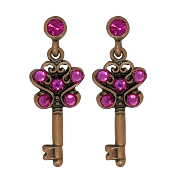 Key Earrings Copper Fuchsia