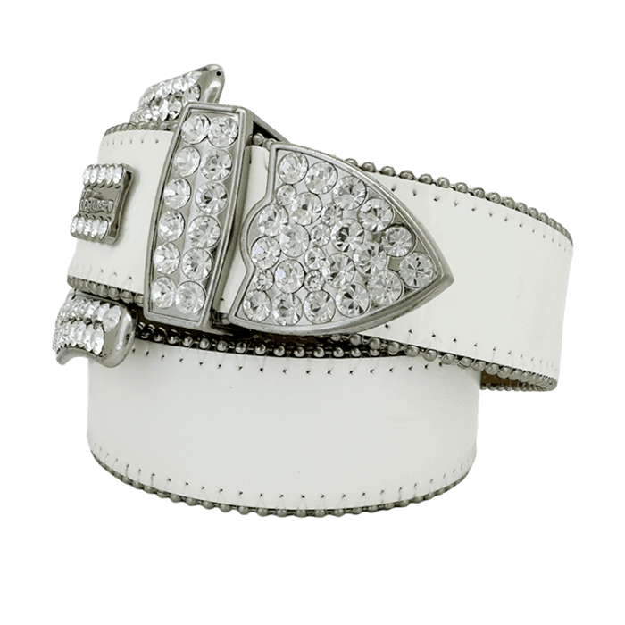 This item is a white leather belt with clear crystal as can be seen in the description section of the item.