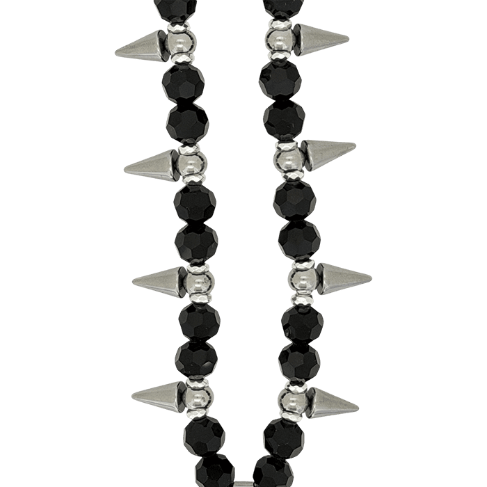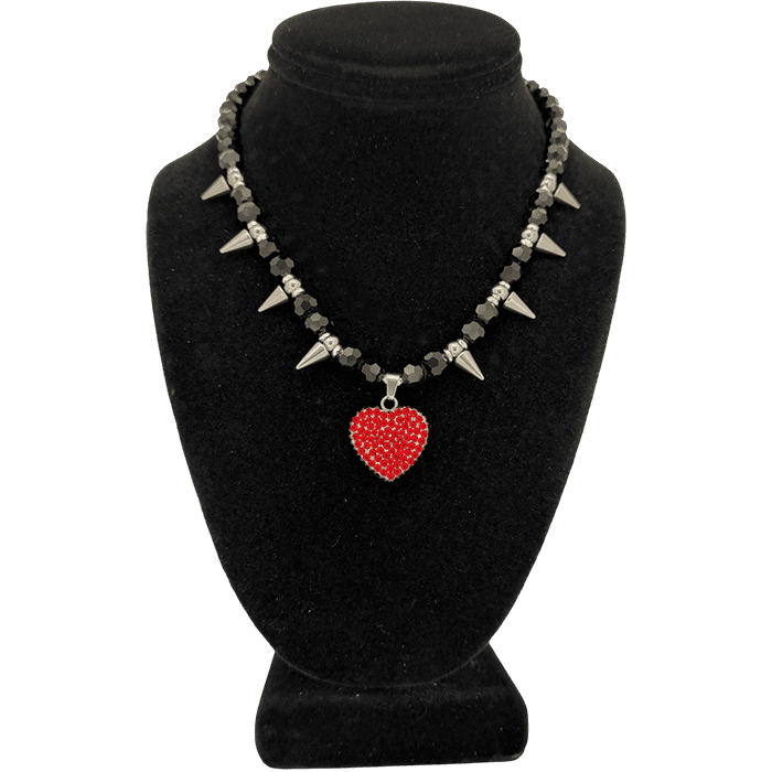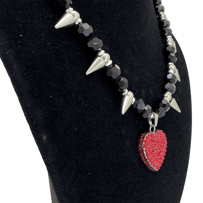 SKU NKS 84- Black Beads-Silver Spikes-Full Crystal Heart-Lt.Siam Categories , Tags , , , ,
