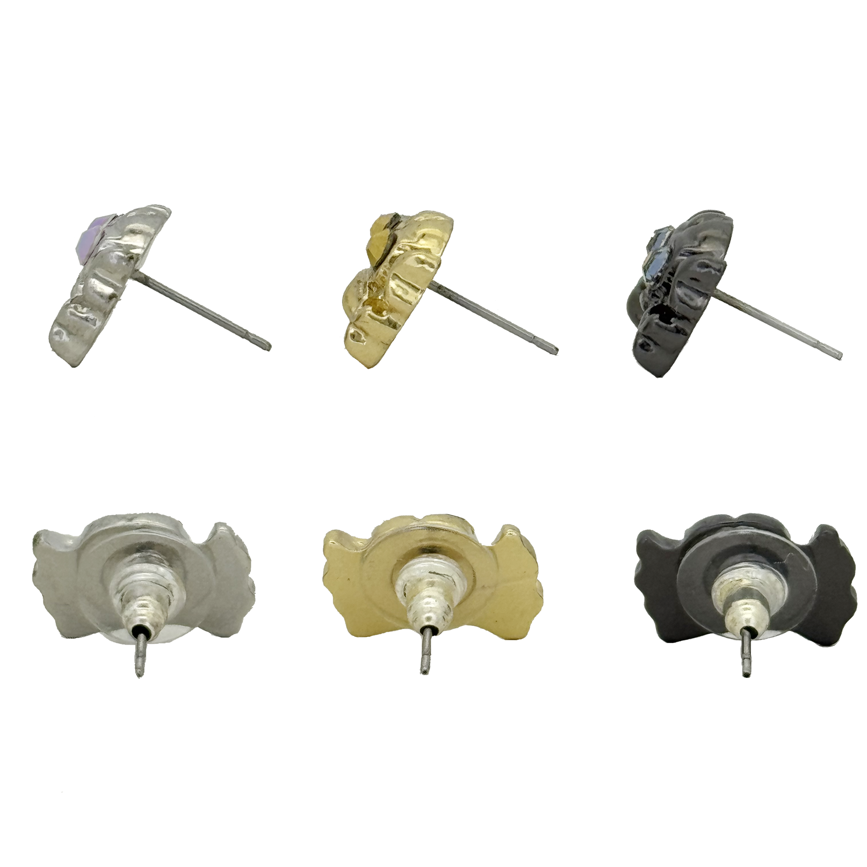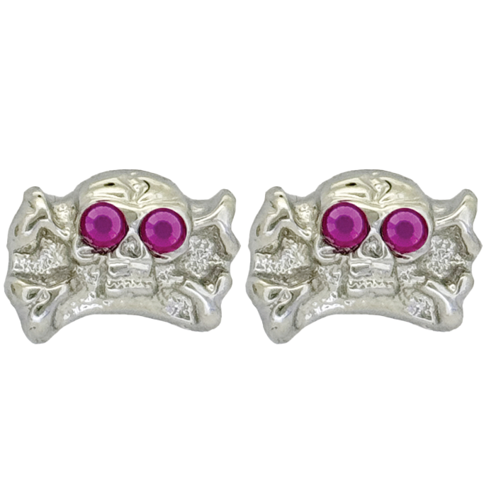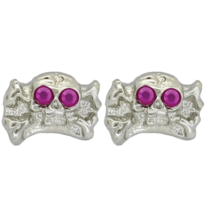 The silver-tone skull n bones earrings, set with 2 Fuchsia Swarovski crystals as the eyes, feature our customised butterfly-back fastenings and an orb-shaped silhouette.