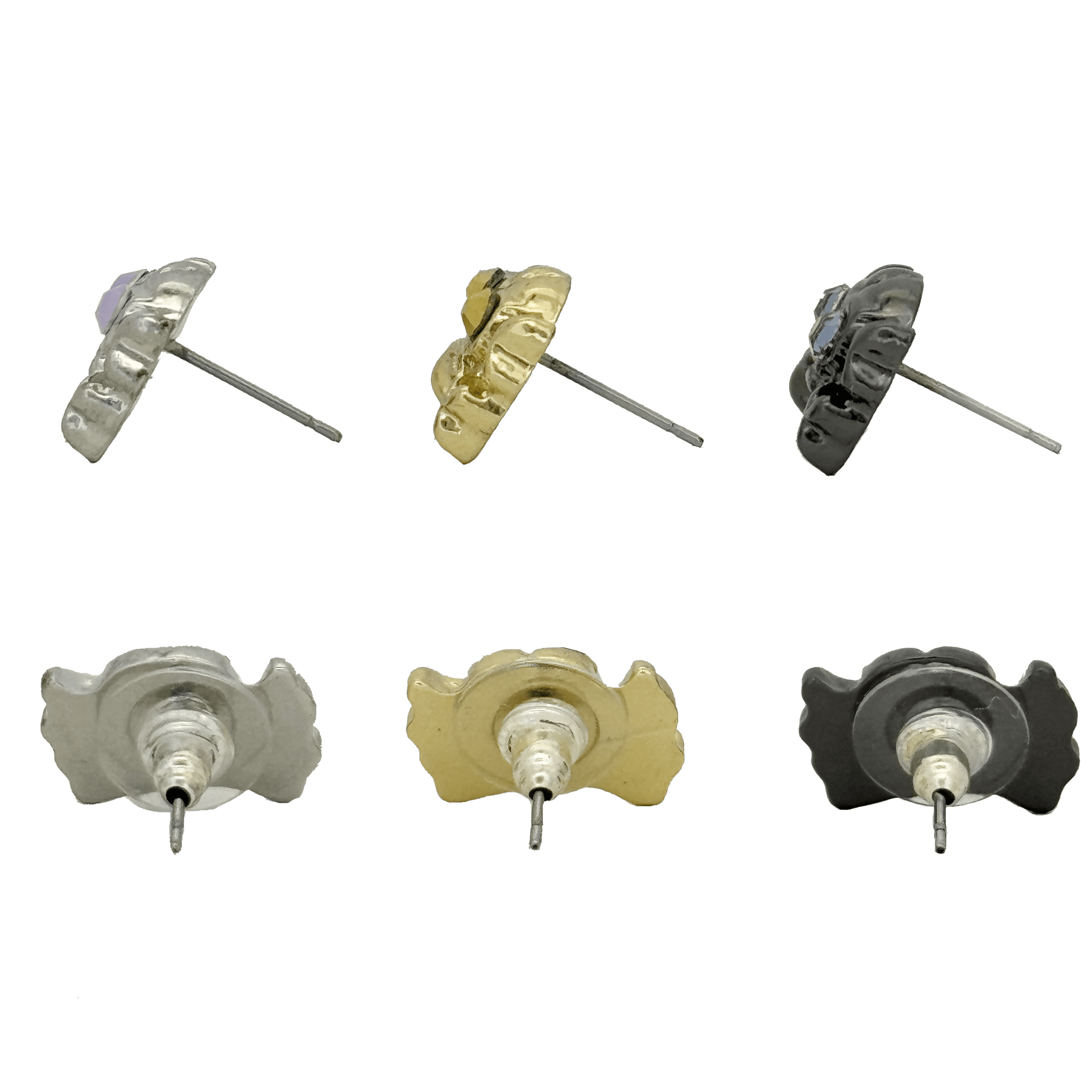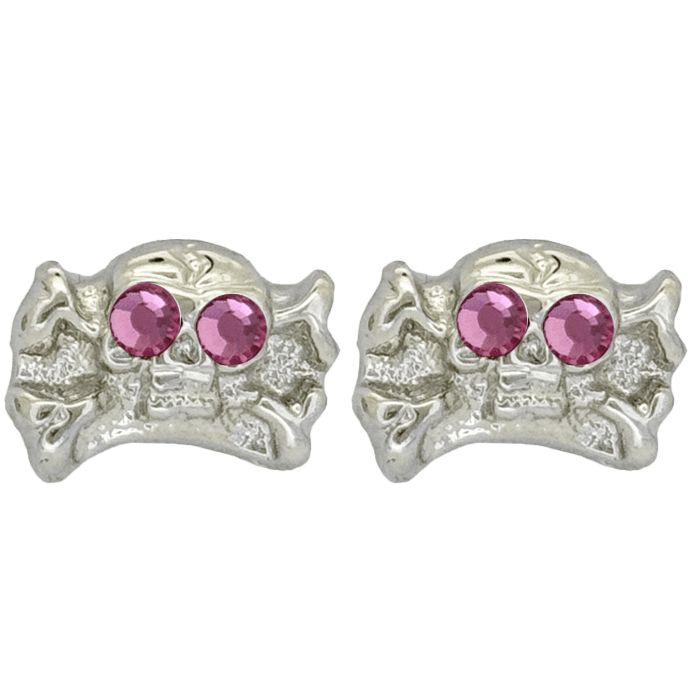 The silver-tone skull n bones earrings, set with 2 Rose Swarovski crystals as the eyes, feature our customised butterfly-back fastenings and an orb-shaped silhouette.