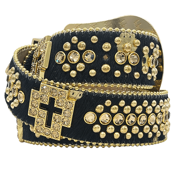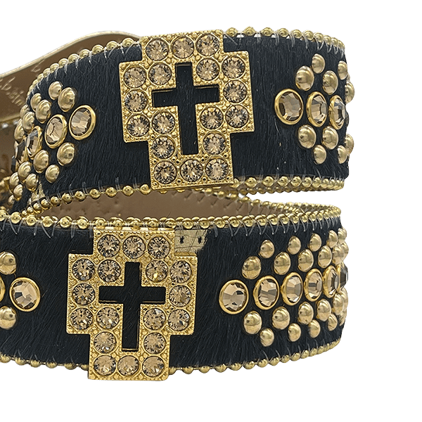 BLACK PONY HAIR STRAP W/ GOLD ACID WASH
